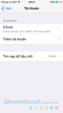 Bước 1: Các bạn vào mục Cài đặt – Settings trên thiết bị của mình, sau đó kéo và tìm mục Mail (hoặc Mail, Contacts, Calendars) và chọn tiếp vào Tài khoản – Account.