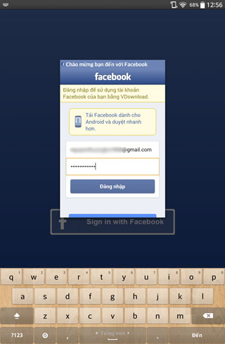 Chạm vào Sign in With Facebook và nhập tài khoản gồm tên đăng nhập và mật khẩu > Bấm đăng nhập > khi Facebookyêu cầu xác thực bạn bấm OK.